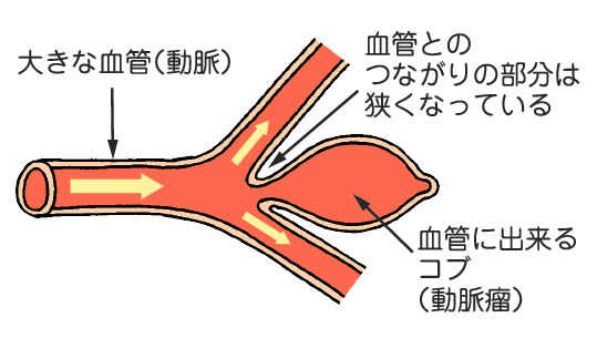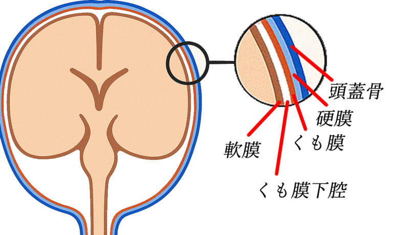 「くも膜下出血」とは脳動脈に出来る瘤(コブ状の血管変形)が破裂して、2層目のクモ膜と3層目の軟膜の間のクモ膜下腔に出血が生じる病です。